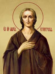 В тебе, мати, известно спасеся еже по образу: приимши бо Kрест, последовала еси Христу, и деющи учила еси презирати убо плоть, преходит бо, прилежати же о души, вещи безсмертней. Темже и со aнгелы срадуется, преподобная Марие, дух твой.